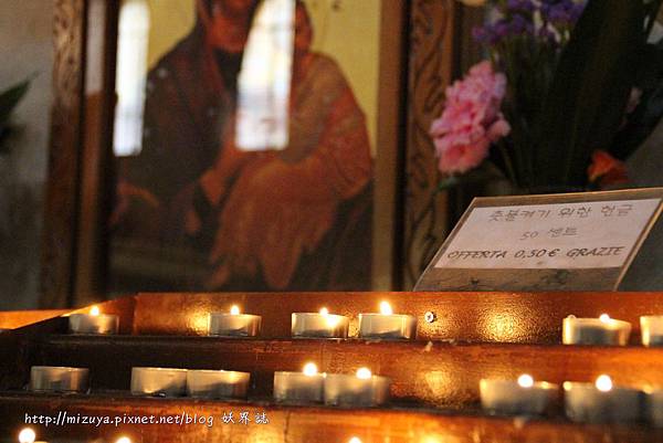 跟真理之口拍照完,可以順便進到旁邊的聖母堂看一看。沒有像聖彼得大教堂那麼華麗壯觀,但是內部倒也有種簡樸寧靜之美。
