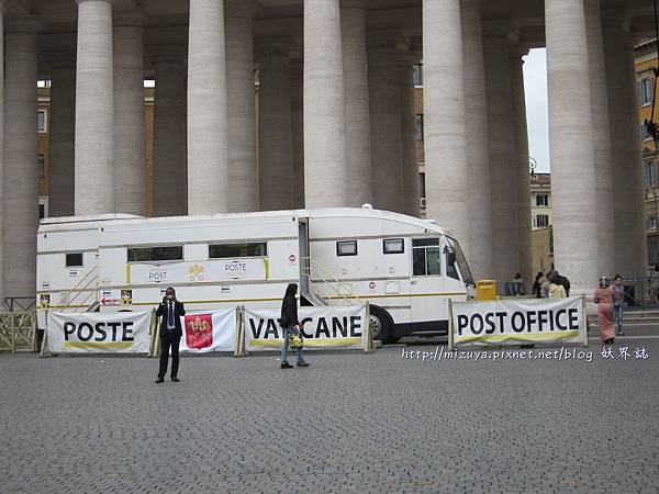 在真理之口稍做停留後,我們就到了世界上最小的國家──梵諦岡(Vantican)。梵諦岡的國土面積只有44公頃(只比大佳河濱公園大一點點),但如此小的土地卻對歐洲有極大的影響力。雖然梵諦岡這麼小,不過它仍然擁有自己的貨幣、郵局、警政及司法系統等等,絕不是附屬於義大利之下的國家。
