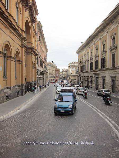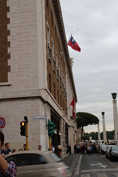 而我們今天到梵蒂岡其實是個散步之旅,因為真正要參觀聖彼得大教堂與梵蒂岡博物館是後天的事,可以說是先來預習一下;或者,最重要的是來看看台灣在歐洲唯一的大使館。只要沿著聖彼得廣場開口的協和大道一直走,就可以看到實際上位於羅馬土地的中華民國駐教廷大使館,其樓下則是加拿大的大使館。