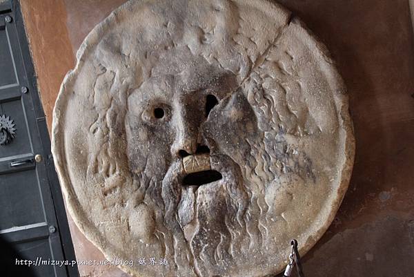 到了羅馬後,我們第一個目標就是大家都喜歡被咬的──真理之口。真理之口是一個類似海神的雕塑,原本應該是某個噴泉的裝飾或水井蓋什麼的,後來被改放到羅馬的希臘聖母堂(Basilica di Santa Maria in Cosmedin)。它起先只是放在教堂外一個默默無名的裝飾,後來因為「羅馬假期」這部電影知名度大增,來到羅馬的人沒有不來把手放進去的。