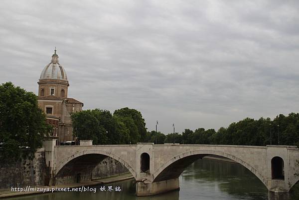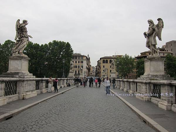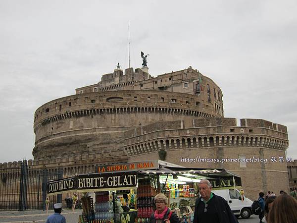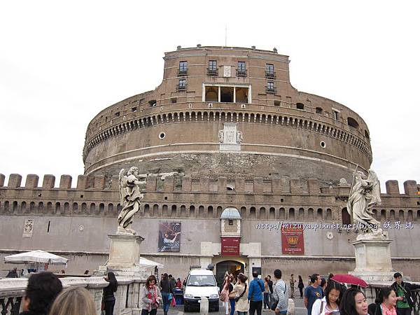 走過了大使館,興奮地拍了照片,再來就是曾出現在電影「天使與魔鬼」中的聖天使堡。聖天使堡位於台伯河畔,一開始哈得連皇帝是建造它來做為自己的陵墓,後來變成防禦城牆的一部分,最後再改造成監獄,現在則是教宗遭遇危險時的避難場所。
